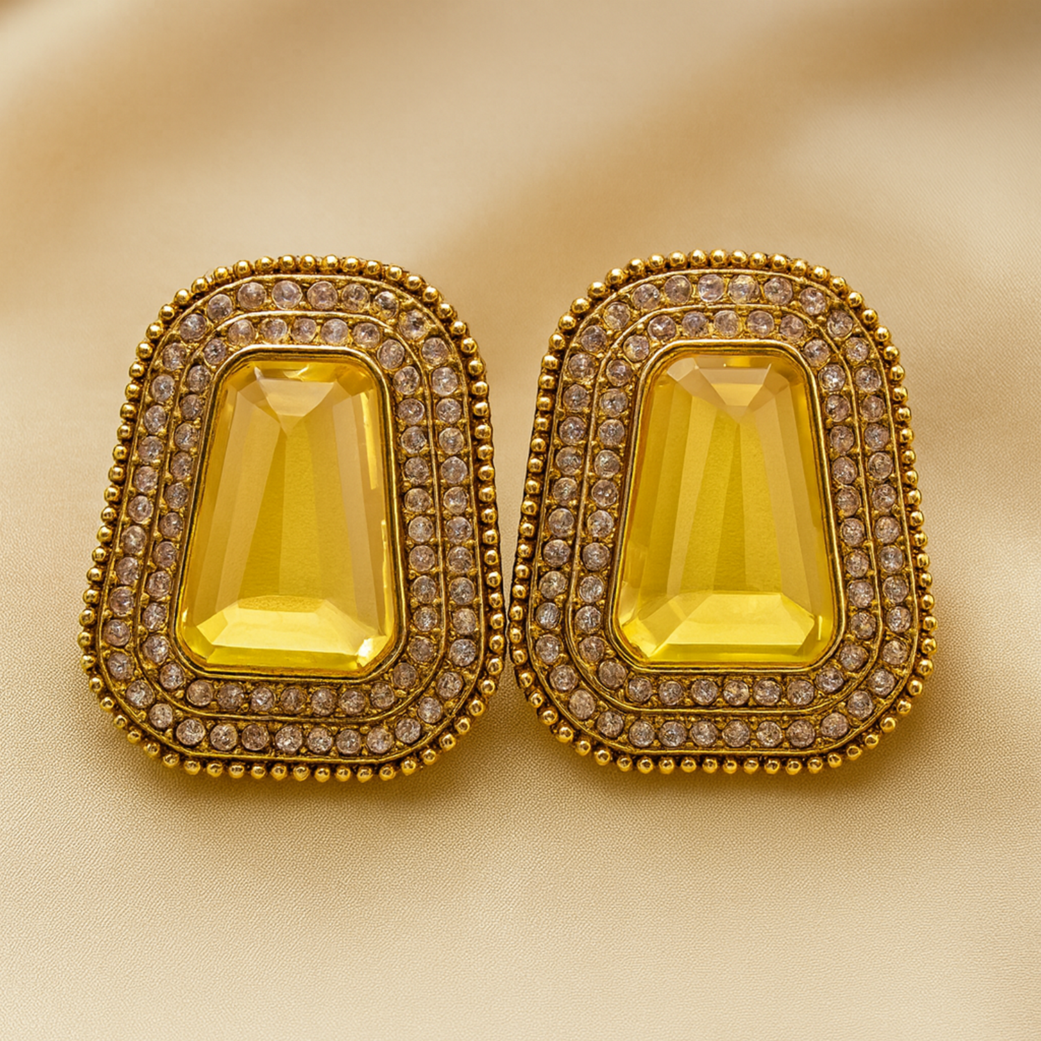 Elevate your style with these luxurious gold-plated stud earrings, featuring a stunning yellow gemstone centerpiece surrounded by sparkling crystals. Designed for modern women who love elegance with durability, these earrings are anti-tarnish, waterproof, and perfect for everyday wear or special occasions.